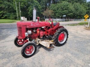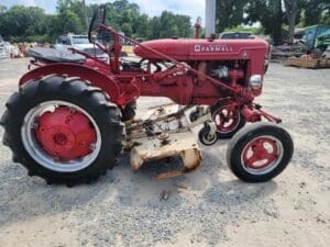 Farmall 100 tractor with a full set of cultivators and side mount drive for fertilizer